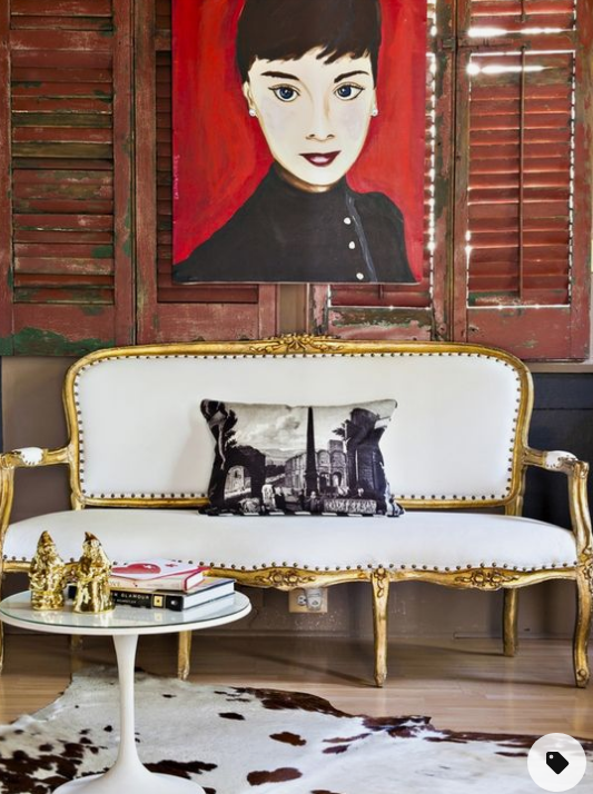 In the second installation of our Room Recreation series (see first post here) we have a mash up of antique and modern elements. The gilded antique style sofa in the inspiration image is paired with a cowhide rug and white tulip pedestal table. With Vision Furniture's eclectic rental inventory we...