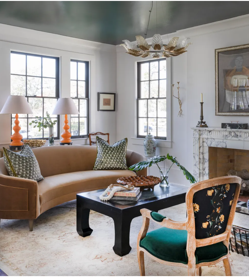 In our fourth Room Recreation blog we are getting a little funky... Our inspiration image is from Architectural Digest and features a harmonious mish-mash of different styles, colors and textures in the living room of designer Penny Francis. This "Lively New Orleans Home" features French antiques alongside mid-century modern accents...