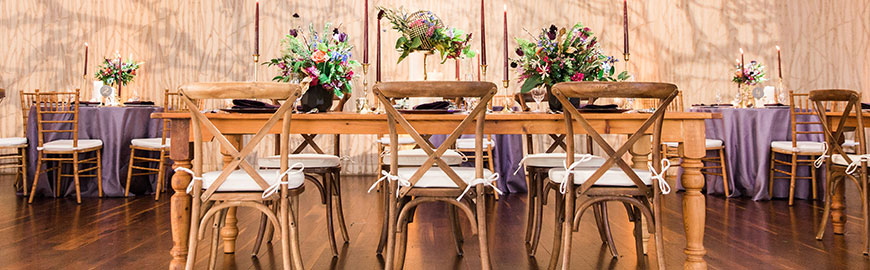 Our rustic seating options feature mostly wooden styles in classic silhouettes like the Cross Back Chair, Thonet Bentwood Chair, and wood toned Chiavari Chairs. Available for event rentals in the Philadelphia, PA region.